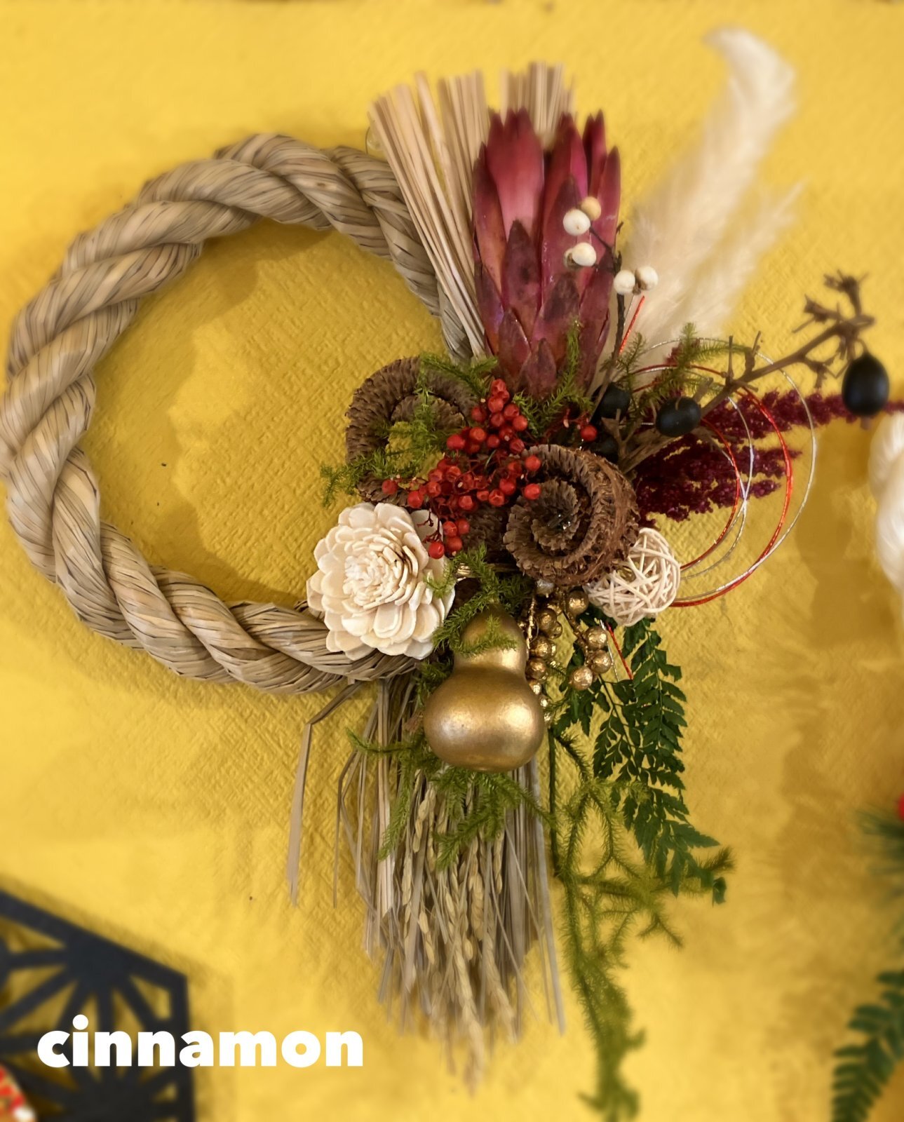 先日グリーン系の丸リースを作られたので